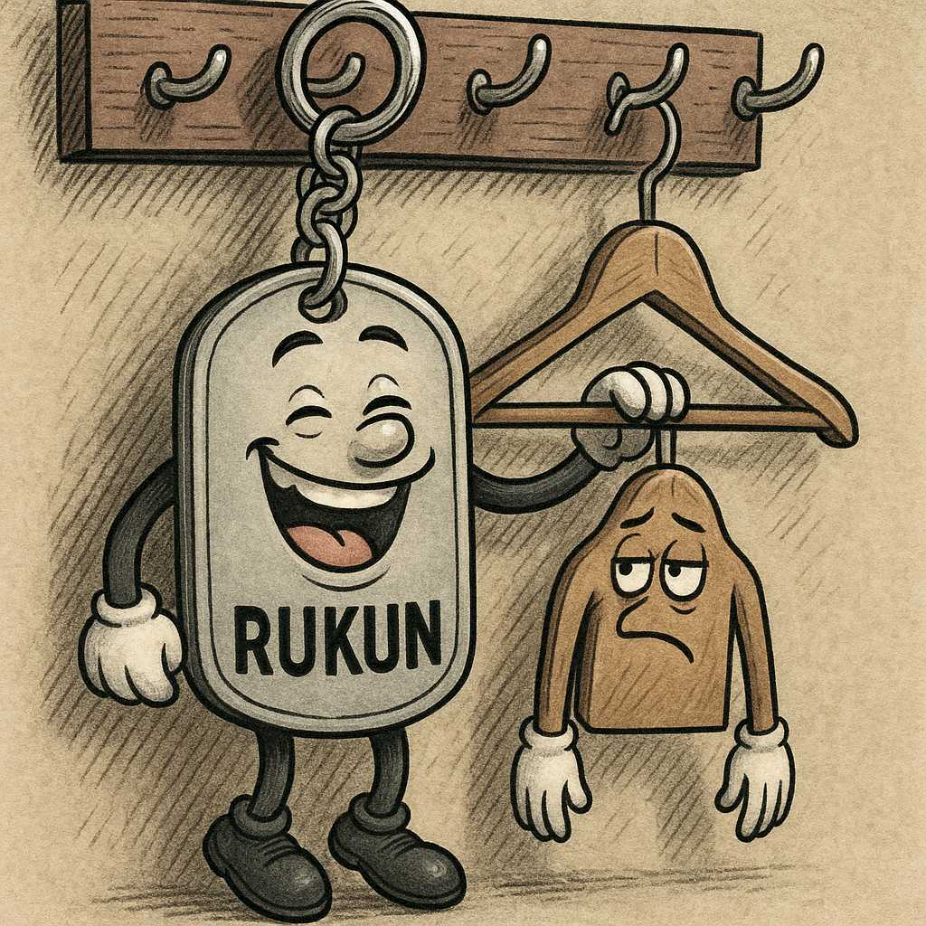 Sama-sama gantungan, tapi satu nempel di kunci... satu nempel di kerah baju. Yang satu ikut lo ke mana-mana, yang satu setia nungguin lo pulang!